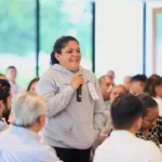 Las y los participantes dieron testimonio de los cambios que han vivido sus comunidades desde la llegada de Lazos del Bienestar, destacando cómo la organización social, la cercanía institucional y el trabajo conjunto han fortalecido el tejido comunitario en sectores como Echeverría y Pajaritos en Victoria; Jarachinas en Reynosa; La Popular en Matamoros; Villas de San Miguel en Nuevo Laredo; Loma Alta en San Fernando; la cabecera municipal de Tula; Aviación en El Mante; Borreguera y Moscú en Tampico; Francisco Villa en Madero; y Los Prados en Altamira.
