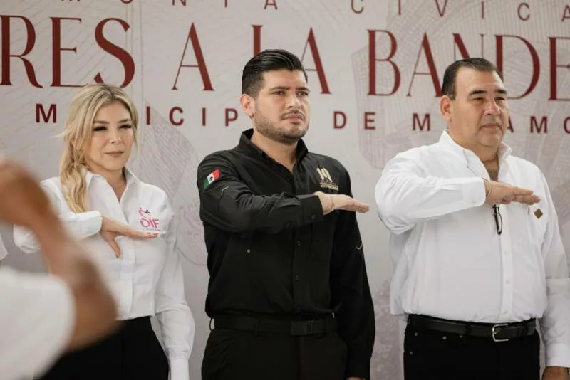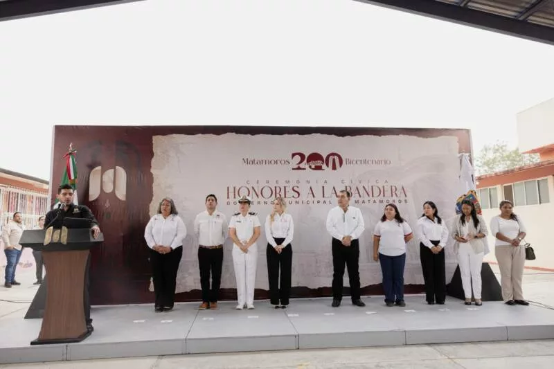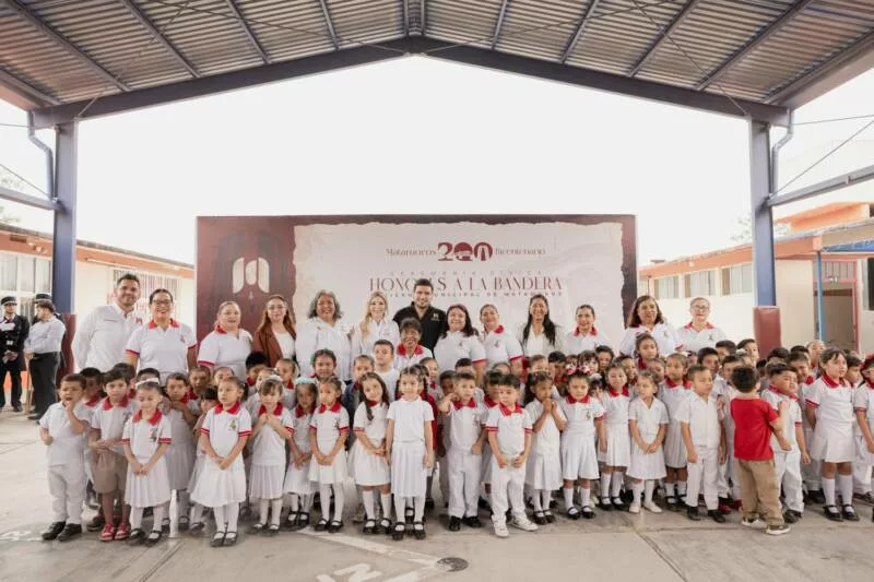 H. Matamoros, Tamaulipas.- Comprometido con la educación y el fortalecimiento de la identidad nacional, el alcalde Beto Granados encabezó la ceremonia de honores a la bandera en el Jardín de Niños "Valentín Contreras", donde reafirmó su apoyo para mejorar las condiciones de aprendizaje de la niñez matamorense.