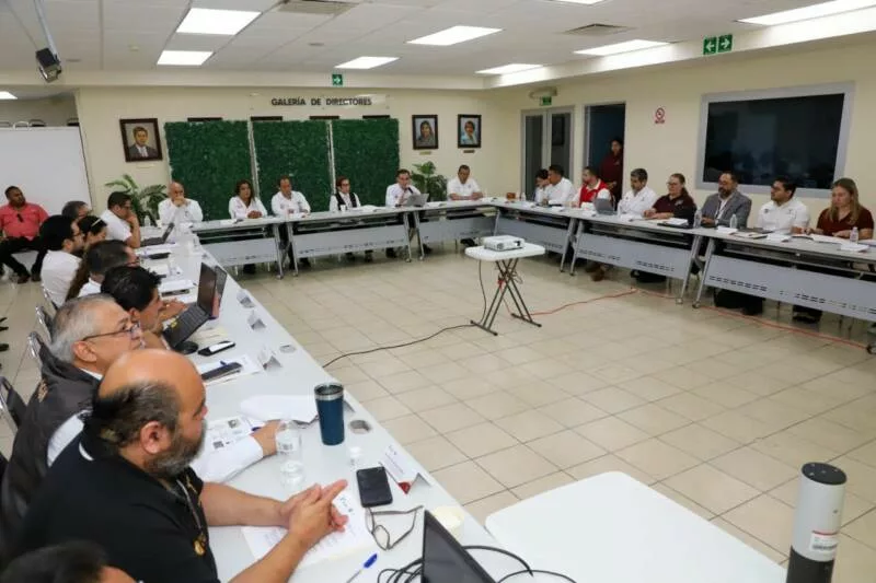 La primera reunión del CESS se llevó a cabo en las instalaciones de la Facultad de Enfermería de esta ciudad y se contó con la asistencia del coordinador Estatal del IMSS Bienestar, Marggid Antonio Rodríguez Avendaño; el Titular del Órgano de Operación Administrativa Desconcentrado del IMSS, José Luis Aranza Aguilar; el comisionado estatal para la Protección contra Riesgos Sanitarios, Mario Alberto Rebolledo Urcádiz; el director general de Coordinación de Servicios Médicos, Calidad y Enseñanza, Carlos Arturo González Castro; la directora general de Planeación y Desarrollo del Sector Salud, Loyda Ramírez López; el director de Epidemiología Estatal, Sergio Uriegas Camargo, entre otros representantes.