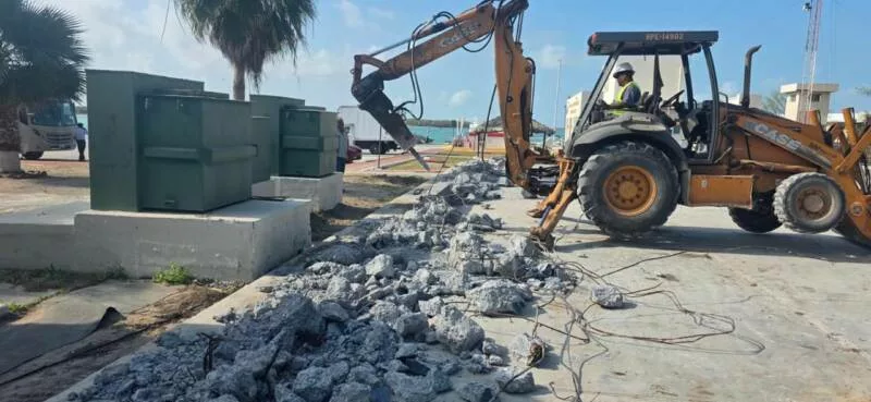 El titular de la Secretaría de Obras Públicas, Pedro Cepeda Anaya, informó que se ejecutan trabajos de infraestructura orientados a fortalecer la operatividad del puerto y detonar nuevas oportunidades de inversión. Entre las acciones destacan la construcción de una barda perimetral, un tanque de almacenamiento con capacidad de mil metros cúbicos, así como la rehabilitación y acondicionamiento de oficinas, áreas de campamento y obras complementarias.