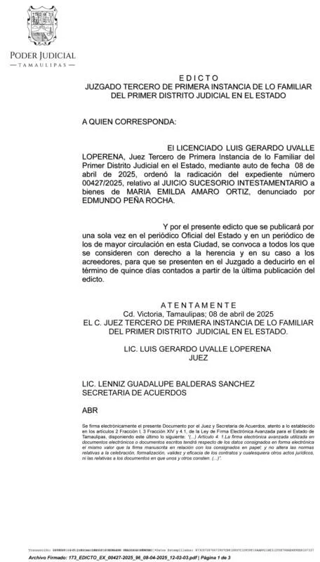 EDICTO 00427/2025