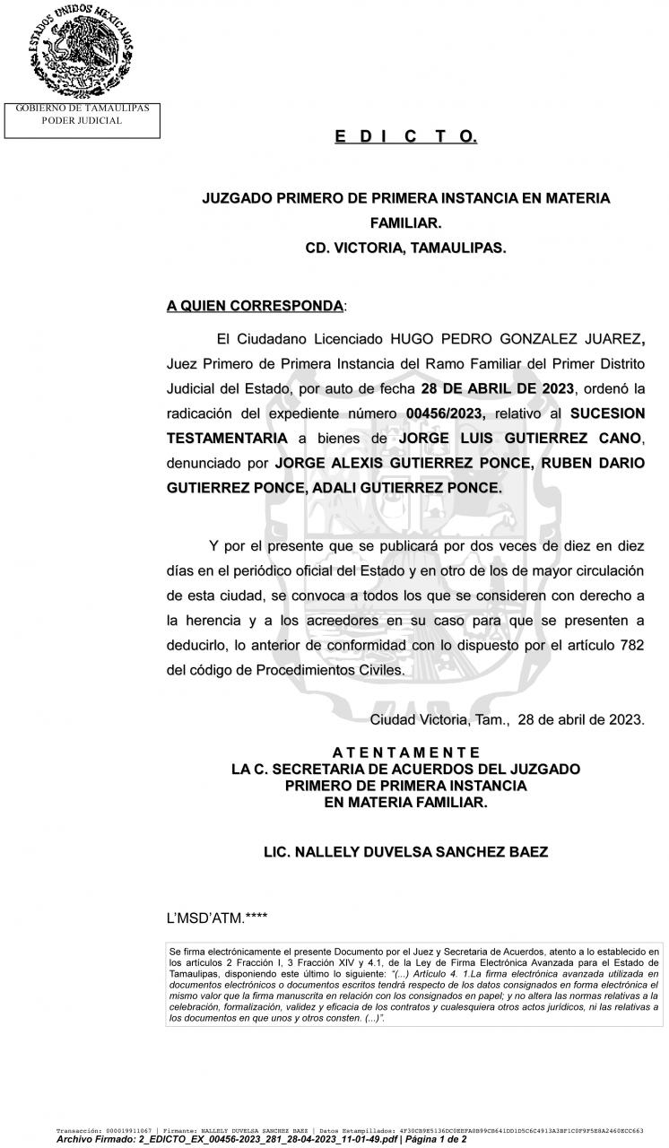 EDICTO 00456/2023