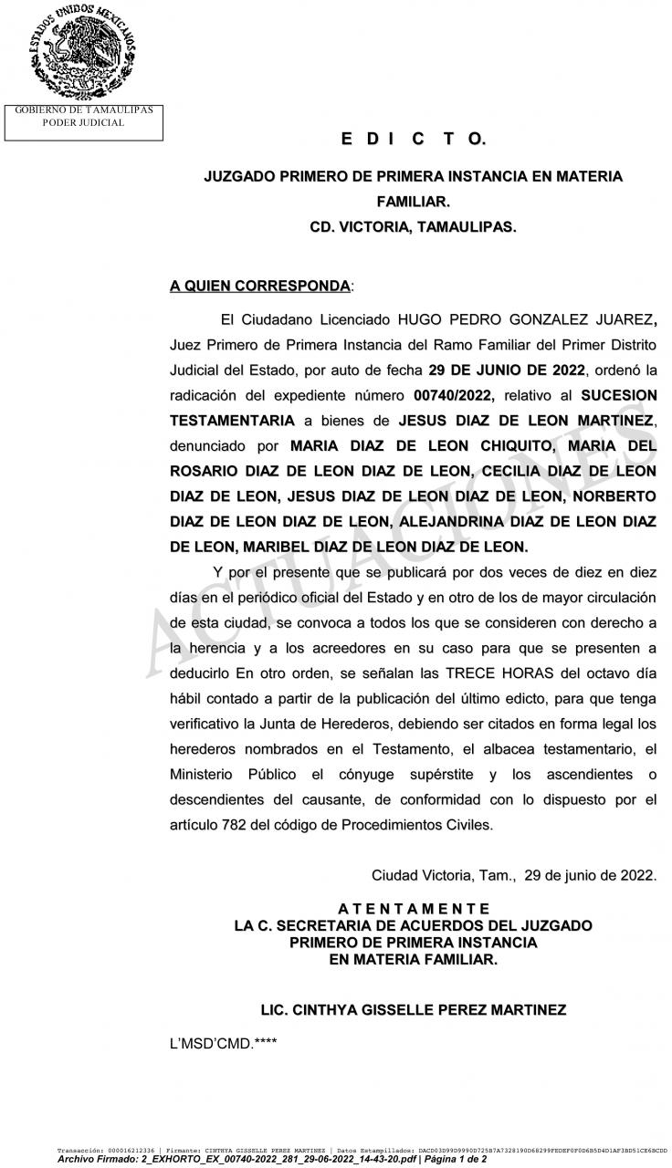EDICTO 00740/2022