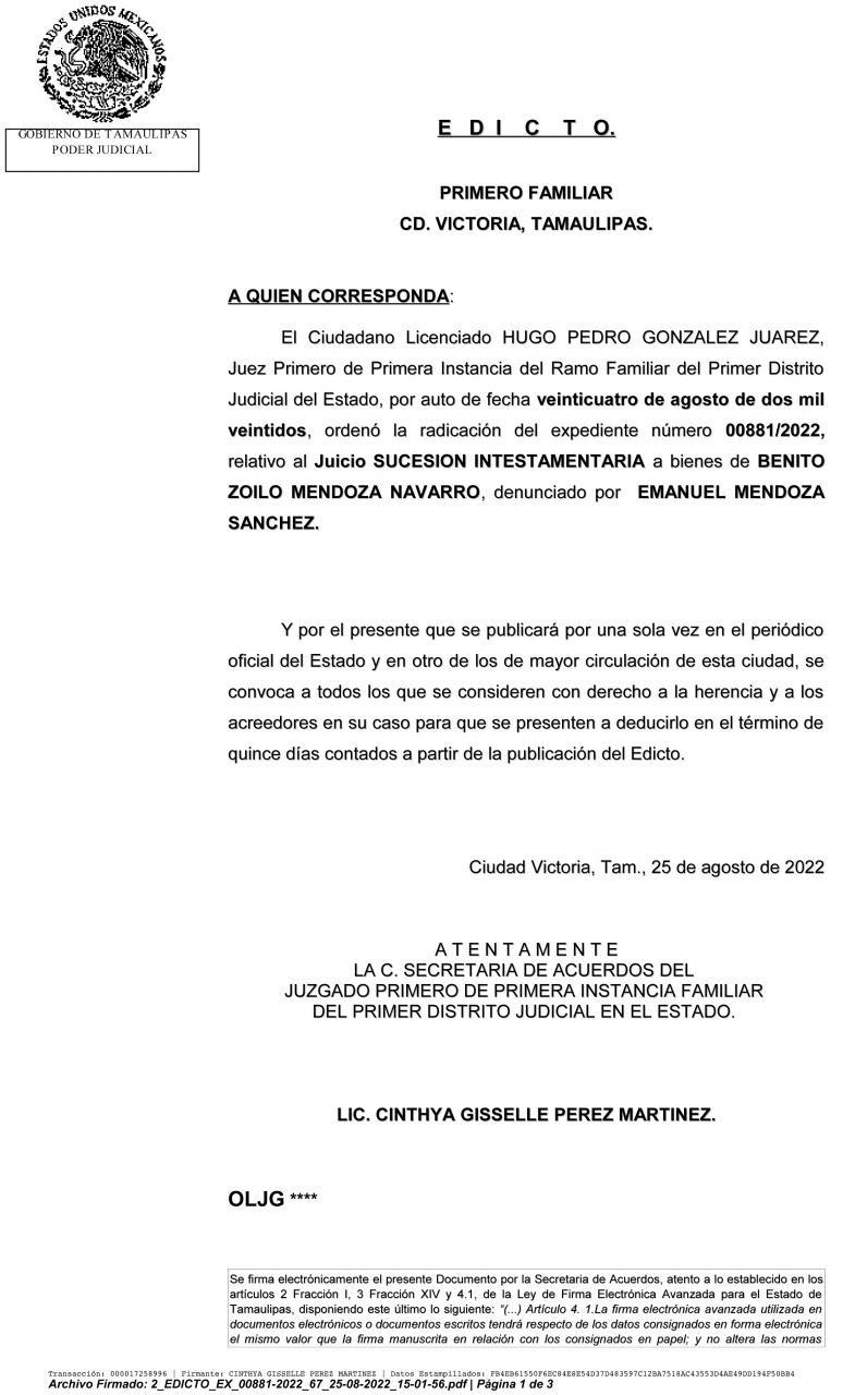 EDICTO 00881/2022