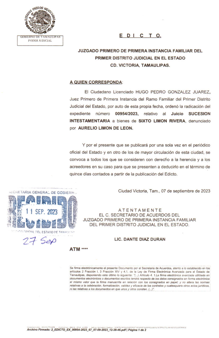 EDICTO 00954/2023