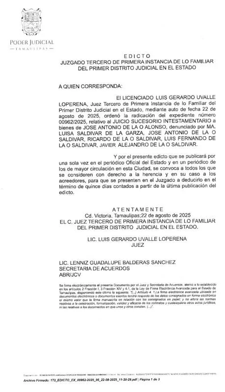 EDICTO 00962/2025
