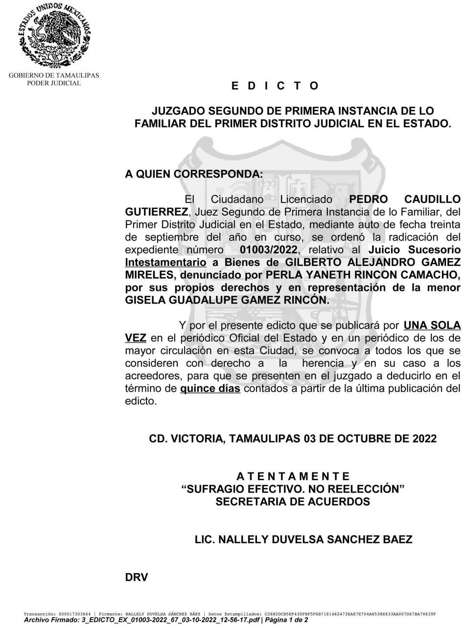EDICTO 01003/2022