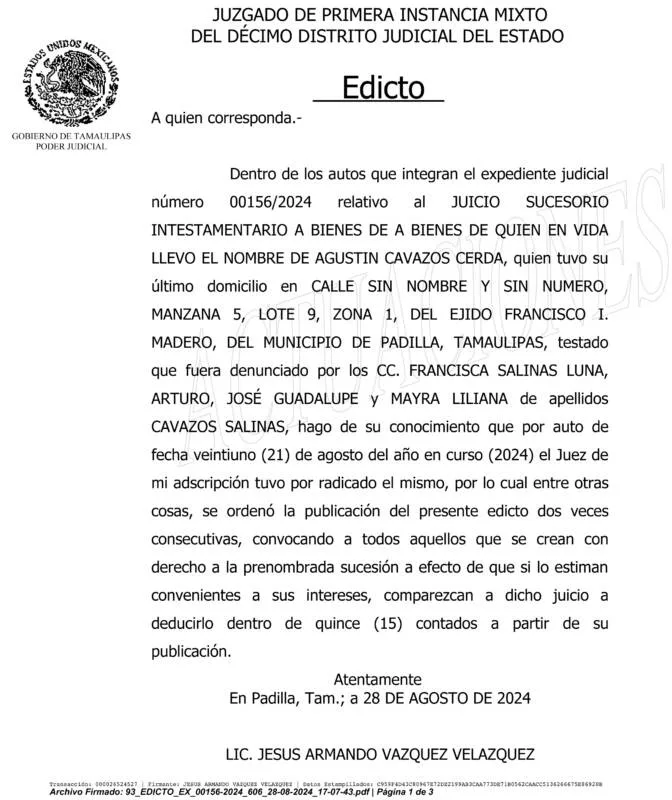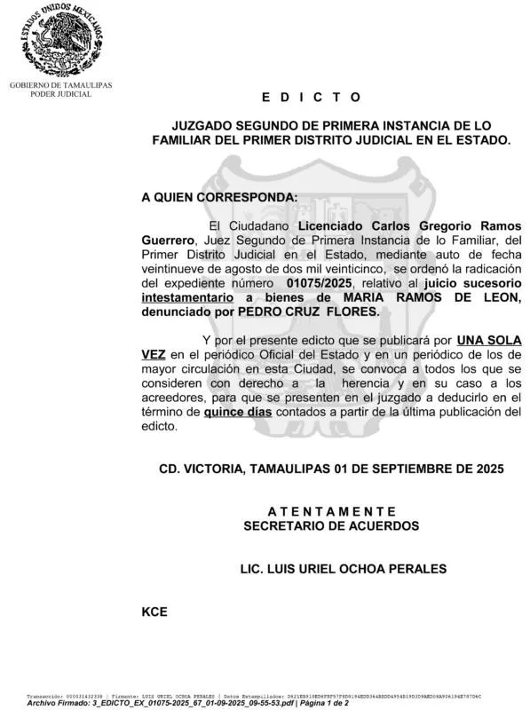 Ver EDICTO 01075/2025